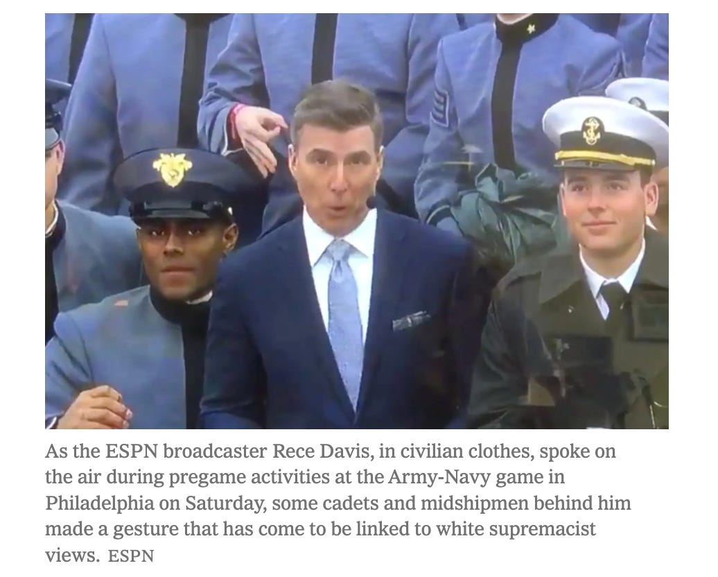 The New York Times explains, “Neo-Nazis, Ku Klux Klansmen and other white nationalists began using the gesture in public to signal their presence and to spot potential sympathizers and recruits. For them, the letters formed by the hand were not O and K, but W and P, for “white power.”