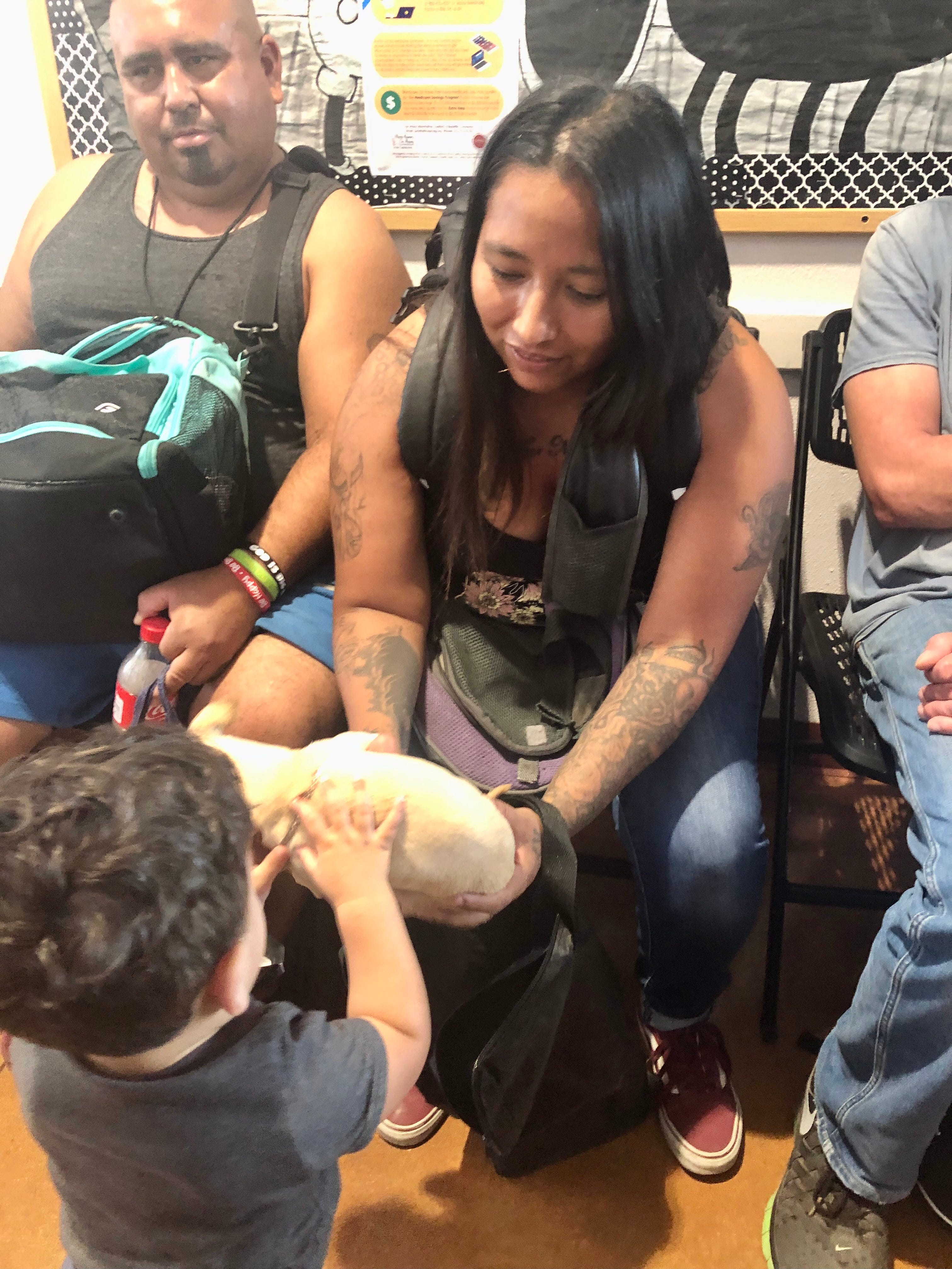 A woman in the food bank line showed my friend’s baby son her chihuahua.