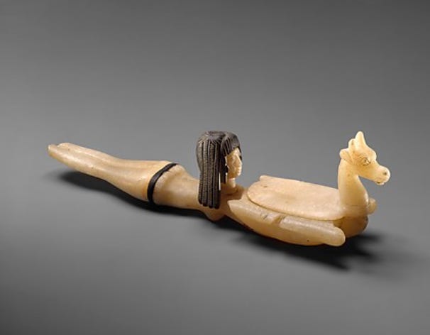 Art: "Cosmetic Spoon in the Shape of Swimming Woman Holding a Dish." ca. 1390–1352 B.C.