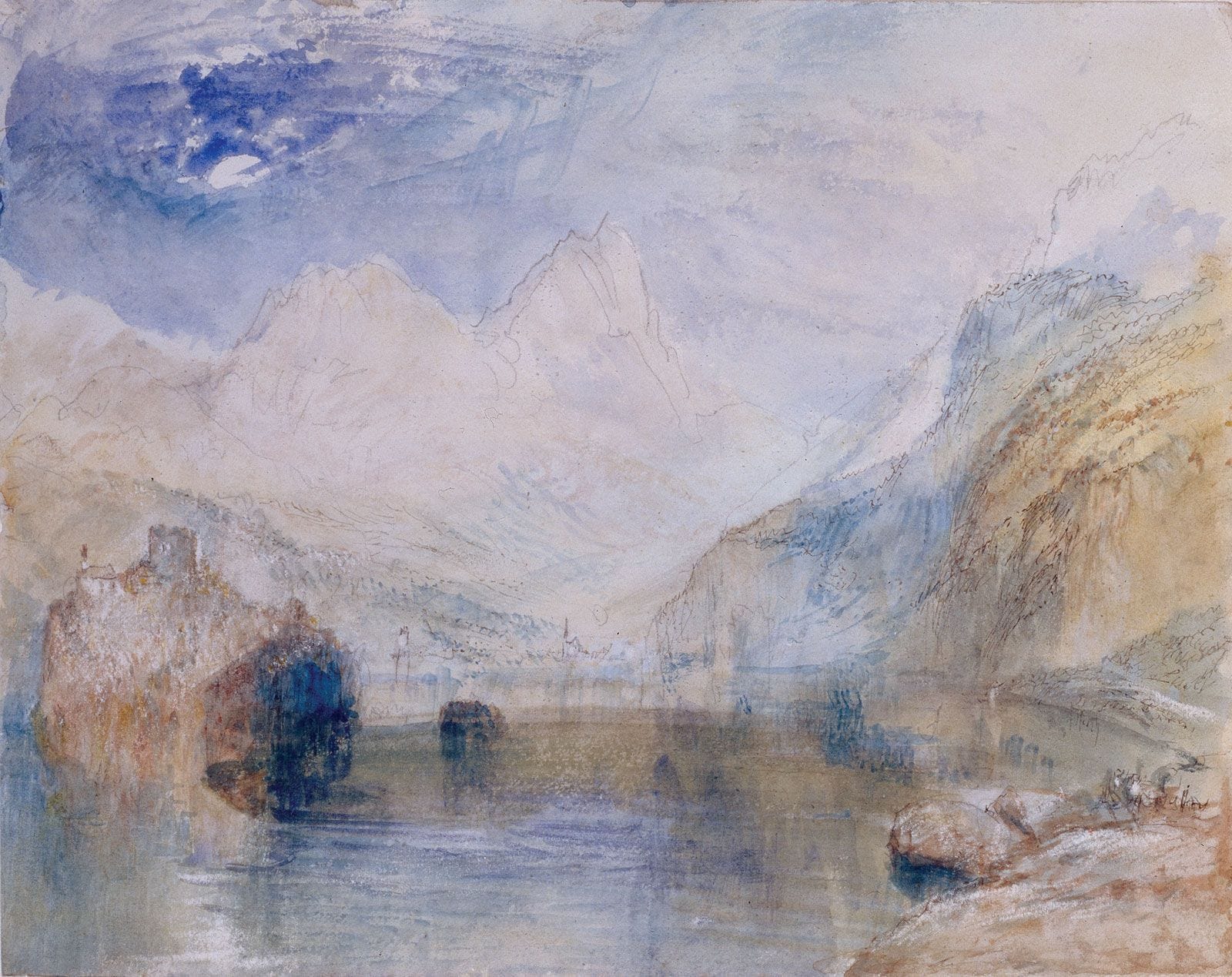 JMW Turner, The Lauerzersee With Schwyz And The Mythen Pencil Pen And Grey Ink With Watercolor