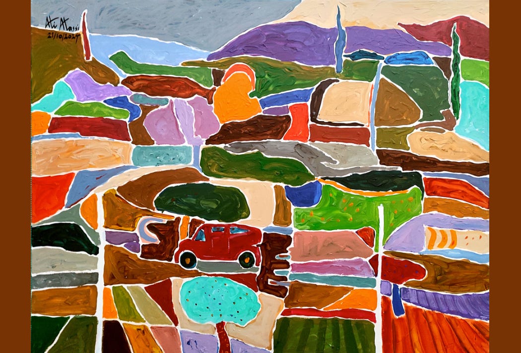 Look at the artwork of Adi Atassi by following the link under the painting above. Choose an image you like and draw in response to it. Use only six colors of marker.